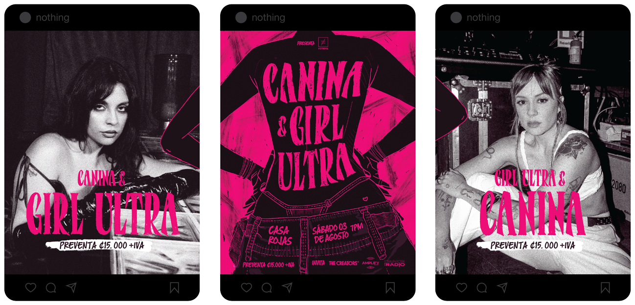 For this project we create a the marketing campaign for the concert featuring Canina, a Costa Rican singer, and Girl Ultra, a Mexican artist.